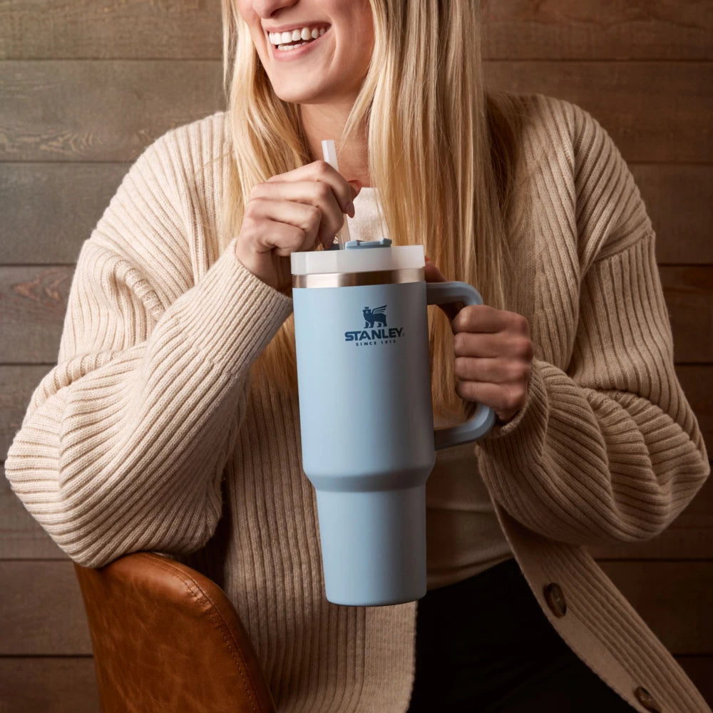 Fill the Stanley Ice Flow Flip Straw Tumbler with your favorite drink and twist the lid securely to prevent leaks. Flip up the straw for easy, spill-free sipping, and carry it comfortably with the sturdy handle. For best results, hand wash the tumbler and lid after each use.